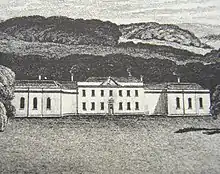 Downes House is situated about one mile east of Crediton in Devon.[1] The house is an 18th-century Palladian re-modelling of an earlier house.[2] It was classed Grade II* listed on 20 May 1985.[3] Nearby is the site of a Roman villa, revealed by crop-marks as a rectangular enclosure containing a winged-corridor structure.[4] In 2012 the estate comprised 1400 acres, including the Home Farm (419 acres), Fordton Barton (203 acres), Uton Barton (327 acres), Dunscombe Farm (246 acres) and other land 110 acres and parkland.[5]