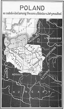 The last will and testament of the Piast duke Bolesław III Wrymouth of Poland,[1] established rules for governance of the Polish kingdom by his four surviving sons after his death. By issuing it, Bolesław planned to guarantee that his heirs would not fight among themselves, and would preserve the unity of his lands under the Piast dynasty. However, he failed; soon after his death his sons fought each other, and Poland entered a period of fragmentation lasting about 200 years.[2]