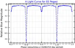 A blue band light curve for EE Pegasi, plotted from data published by Ebbighausen (1971)[1]