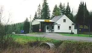 The Easton–River de Chute Border Crossing connects the towns of Easton, Maine and Wicklow, New Brunswick on the Canada–US border. Historically, two roads entered Easton from Canada, but in the late 1950s, the Canada closed its Beaconsfield crossing on Nicholson Road, so the US government moved its border station from its original location near the intersection of Ladner and Curtis Roads. After the move, the US Customs Service operated out of at least three different mobile trailers until 2012, when it finally constructed a permanent border inspection station.[1]