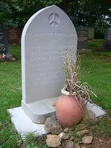 Bishop died on 8 June 2005 at the age of 72, three days before his 73rd birthday, and five days after the death of his UFO co-star Michael Billington. He succumbed to a chest infection contracted while undergoing treatment for leukemia.[4] He is buried in the churchyard of the Parish Church of Saint Lawrence in Napton, Warwickshire, having previously lived there for many years. His grey sandstone tombstone has a peace symbol prominently engraved on it. Its design is very similar to the one situated two metres (6 feet) on the right, which marks the grave of his son Daniel (16 May 1967 – 18 January 1988), who was killed in a car accident in Cumbria. Bishop's epitaph (from Red River Valley) reads: From This Valley They Say You Are Going. We Shall Miss Your Bright Eyes And Your Smile. He spent the last few years of his life living in West Molesey.