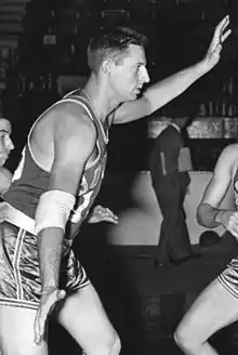 After starring at Joliet Catholic High School in Illinois, the 6'8" Mikan joined the DePaul Blue Demons men's basketball team. With his brother, he helped DePaul win the 1945 National Invitational Tournament Championship over Bowling Green State University. Coach Ray Meyer said that he "was probably the second-best center we ever had at DePaul, only behind his brother George".[1][2]