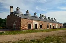 South to the main courtyard, "Matbah-ı Amire" (literally: Imperial kitchen) was situated. It is a long-stretched rectangular-plan building under eight domes. The building's north facade disappeared to a large extent.[1] The building is restored today.[2]</tan1"/>