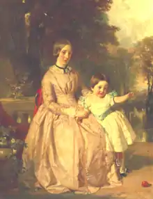 Portrait of Jane Harris Stephens (née Emes), with child, painted by her husband Edward Bowring Stephens (18151882)