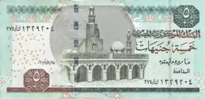 All Egyptian banknotes are bilingual, with Arabic texts and Eastern Arabic numerals on the obverse, and English texts and Western Arabic numerals on the reverse. Obverse designs tend to feature an Islamic building with reverse designs featuring Ancient Egyptian motifs (buildings, statues and inscriptions). During December 2006, it was mentioned in articles in Al Ahram and Al Akhbar newspapers that there were plans to introduce £200 and £500 notes. As of 2019, there are £200 notes circulating but there are still no plans for issuing £500 notes.[18] Starting from 2011 the 25 PT, 50 PT and £1 banknotes were phased out in favour of more extensive use of coins. However, as of June 2016 the National Bank of Egypt reintroduced the £1 banknote into circulation[19] as well as 25 PT and 50 PT notes in response to a shortage of small change.