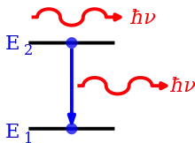 A photon with an energy equal to the difference E2E1 between the energy levels is released or absorbed in the process. The frequency ν at which the spectral line occurs is related to the photon energy by Bohr's frequency condition E2E1 = where h denotes the Planck constant.[2][3][4][5][6][7]