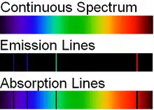An emission line is formed when an atom or molecule makes a transition from a particular discrete energy level E2 of an atom, to a lower energy level E1, emitting a photon of a particular energy and wavelength. A spectrum of many such photons will show an emission spike at the wavelength associated with these photons.
