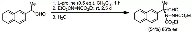 - ↑ Baumann, Thomas; Vogt, Henning; Bräse, Stefan (2007). "The Proline‐Catalyzed Asymmetric Amination of Branched Aldehydes". Eur. J. Org. Chem. 2007 (2): 266–82. doi:10.1002/ejoc.200600654.