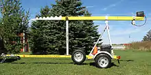 Where speed-of-operation, portability and the ability to hoist heavier professional camera equipment are the main goals, the masts can be mounted on a specialized trailer for easy transport. The trailer mounted system is quick to set up, since no assembly is required at the site. The mast pivots near its center of gravity, requiring very little effort to move it from the travel position to the vertical position for shooting. The telescoping mast can also be mounted on a large car or a van. Larger masts can to be attached to a 4x4 vehicle for greater stability for greater safety.