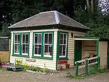 When the Elham Valley Railway was being built, local people had requested a station at Cheriton, but the SER refused.[32] On 1 May 1908 a halt at Cheriton was opened to the public.[29][33] It was on the main line but used by the valley trains and staff trains only, except on rare occasions. It was closed seven years later for the duration of World War I, and was re-opened in June 1920 until World War II, when it was abandoned for five years.[29]