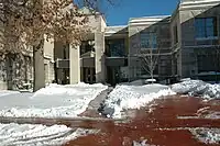 View of the library's west entrance which faces Ninth Street and Conley.