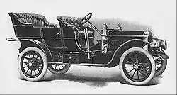 Elmore Manufacturing Company was a manufacturer of veteran and brass era automobiles and bicycles (1893–97),[1] headquartered at 504 Amanda Street,[2] Clyde, Ohio, from 1893 until 1912. The company took its name from a small parcel of land in Clyde with the name Elmore associated with it where a stave mill was established originally, then evolved into bicycle production.[3] The village of Elmore, Ohio is located 20 mi (32.2 km) to the east. Founded by Harmon Von Vechten Becker and his two sons, James and Burton, the Elmore used a two-stroke engine design, in straight twin or single-cylinder versions. They later produced a straight-3 followed by a straight-4 beginning in 1906 until production ended in 1912. The company advertising slogan was "The Car That Has No Valves", referring to the two-stroke engine.[3]