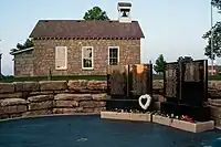 On June 13, 2013, the NTHF executive director, along with former university officials, U.S. Sen. Jerry Moran's staff, and local government leaders broke ground by the one-room schoolhouse located on the campus to build a memorial for teachers who have fallen in the "line of duty". The Sandy Hook Elementary School shooting was the main inspiration for the memorial.[76] On June 6, 2014, the granite memorial markers were placed along with granite benches.[77] The official dedication was held on June 12, 2014.[78]