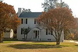 Earlier known as the Harwood Plantation, the house was built in 1769 by William Harwood along the Great Warwick Road, which linked the colonial capital of Williamsburg with the town of Hampton (the county seat of what was then Elizabeth City County) and the great natural harbor of Hampton Roads.[2] The house and grounds were used by military forces during the Revolutionary War, since Harwood was a patriot and political leader, as well as farmed using enslaved labor. General Thomas Nelson, Jr.'s Virginia militia used it as a resting place on September 28, 1781, en route to Yorktown[4] shortly before the surrender of the British troops under Lord Cornwallis. Harwood served many terms in the House of Burgesses representing what was then known as Warwick County, as had his father William Harwood, and he also served as its representative in the Virginia Revolutionary Conventions, and the Virginia House of Delegates as would his second son Edward Harwood. However, the devastations of war and poor farming practices led to Warwick County's depopulation after the conflict (as Harwood's eldest son William took his family and one of his sisters to what became Shelbyville, Kentucky), and reduced political activity by Harwood family members.