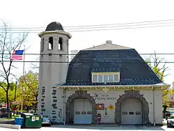 The first fire station east of the Anacostia River was built in 1898. This station, designed by the Washington, D.C. architectural firm of Averill and Adams, was the fourth built there in 1910. The eclectic style, principally French revival, reflected the desire by the Office of the Municipal Architect to create unique designs for new fire stations.[2] At the time, this part of the District of Columbia was considered a suburban district because it was beyond public water service and the street alarm system. Chemical Company Number 2 was housed here for that reason. The building's hose tower was also used as a lookout post. It joined with the last of the District's Chemical companies in being converted to a regular engine company on January 1, 1921 when it became Engine Company 19.[3] In 1925 it was the last company in the department to switch from horse drawn apparatus to motorized.