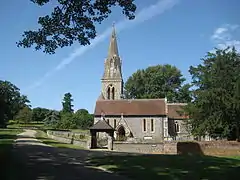 In the late 19th century, Richard Fellowes Benyon rebuilt the villagers' houses as a model estate village and provided them with such amenities as a swimming pool, soup kitchen and a new school. Today the estate, owned by a family company, the Englefield Estate, covers some 14,000 acres (5,700 ha).[4] The village relies on and contributes to the amenities and organisations in Theale and Tilehurst, which bound it to the south and east, as well as Reading.