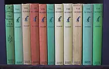 The 5th through 14th impressions come in a variety of colors. Generally all the books from one printing are bound in the same color, but exceptions may have been found, perhaps when bindings intended for one printing were left over and found use at the beginning of the next printing. Hence the color of the covers cannot conclusively identify a book.