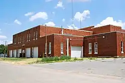 Of the WPA-built armories in Oklahoma, the Enid Armory was the only one utilizing red brick in its construction.[2] The Oklahoma National Guard trained soldiers for combat in World War II and Korea. In 2005, the BRAC Commission voted to close 53 state armories and build Armed Forces Reserve Centers, including one at Vance Air Force Base.[3][4] The Enid Armory location was approved by city commissioners as a new site for Garfield Elementary School, and was demolished by the Enid Public School system, following the opening of the Armed Forces Reserve Center at Vance, and the removal of lead and asbestos from the site by the Oklahoma Department of Environmental Quality.[5][6][7] The first Enid Armory was constructed in 1925 at Phillips University. The 189th Field Artillery Regiment of the Oklahoma National Guard was stationed at Phillips from 1921 to 1936.[8] On July 7, 1933,[9] Clyde and Buck Barrow [10] broke into the armory, stealing a cache of weapons and ammunition and a pair of binoculars.[9] Their take was so large it filled their car, causing seating difficulty,[10] and overflowed from the bathtub they'd used as storage.[9]