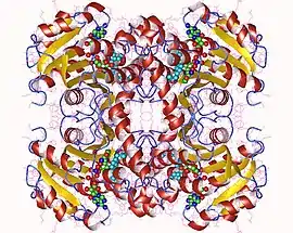 ![]() Enoyl-[acyl-carrier-protein] reductase [NADH] tetramer, Mycobacterium tuberculosis | |||||||||