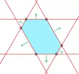 This convex direct equiangular hexagon, <6>, is bounded by 6 lines with 60° angle between. Each line can be moved perpendicular to its direction.