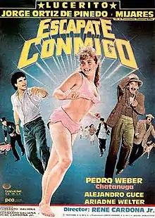 Escápate conmigo (in English: Escape With Me) is a Mexican motion picture categorized as musical and comedy, released in 1988. Manuel Mijares has confessed that he fell in love with Lucero since they starred in this film, ten years later they got married .