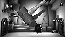 The characters can traverse the game world in numerous ways. In some levels they are inflated with helium, requiring the player to tilt the console to guide them as they float around the room.[7] Lil and Laarg usually move relatively slowly and in order to avoid fast-moving traps the player must grab the characters and pull them quickly to safety by pinching the Vita, touching both the front and rear panels at once.[4]
