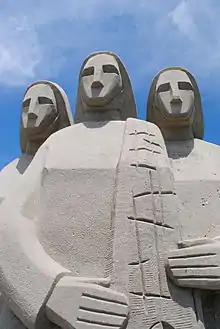 In memory of the storm victims, artist Claude Roussel created a wood sculpture entitled Les Pêcheurs – The Fishermen, which won first prize at New Brunswick Museum in 1962. Later, residents near Escuminac raised money to turn the work into a stone monument, which was dedicated on June 19, 1969. It was nearly 7 ft (2.3 m) in height, weighed about 10,000 lbs (5 tonnes), and depicted a group of fishermen working together, with the names of the deceased on a bronze plaque. In 2001, the government of New Brunswick declared the Escuminac Disaster Monument as a provincial historical site.[5]