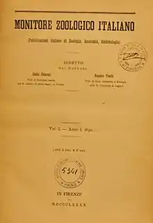 The journal was established in 1890 by Giulio Chiarugi and Eugenio Ficalbi (who edited it until 1922) as the Monitore Zoologico Italiano.[1] From the start, a specific interest is declared for zoology, anatomy, and embryology. The Unione Zoologica Italiana was founded in 1900[2] and in the same year the Monitore became its official journal. In 1923 Ficalbi was succeeded by Angelo Senna. From 1930 to 1933 the journal also became the official journal of the Società Italiana di Anatomia.[1] Since 1934 it is no longer the organ of the Unione Zoologica Italiana and from 1934 to 1966 it is only the organ of the Società Italiana di Anatomia of which the proceedings of the conferences are published. Until 1943 it was edited by Chiarugi and Senna. In 1944 Giuseppe Colosi took over and edited the journal until 1967. In addition to Colosi, in 1946 Nello Beccari and Senna joined as editors. In 1951 Ignazio Fazzari replaced Senna. From 1957 on, the editors were Colosi, Fazzari, and Emanuele Padoa. In 1962 Leo Pardi also became part of the editorial committee.