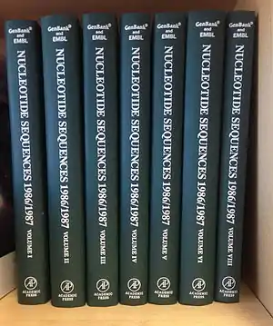 - ↑ Kahn, P.; Hazledine, D. (1988). "NAR's new requirement for data submission to the EMBL data library: Information for authors". Nucleic Acids Research. 16 (10): I–IV. PMC 336623. PMID 16617480.