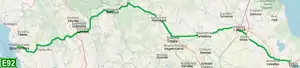 European route E 92 is an A-Class European route, crossing the Greek regions of Epirus and Thessaly.