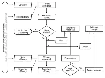 - ↑ Witte K (December 1992). "Putting the fear back into fear appeals: The extended parallel process model". Communication Monographs. 59 (4): 329–349. doi:10.1080/03637759209376276.