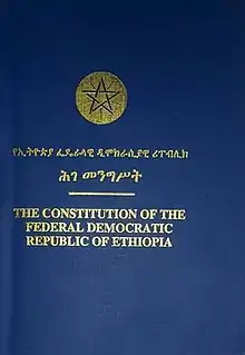 The Constitution of the Federal Democratic Republic of Ethiopia (Amharic: የኢትዮጵያ ፌዴራላዊ ዴሞክራሲያዊ ሪፐብሊክ ሕገ መንግሥት, romanized: Ye-Ītyōṗṗyā Fēdēralawī Dēmokirasīyawī Rīpebilīk Ḥige Menigišit), also known as the 1995 Constitution of Ethiopia, is the supreme law of Ethiopia. The constitution came into force on 21 August 1995 after it was drawn up by the Constituent Assembly that was elected in June 1994. It was adopted by the Transitional Government of Ethiopia on 8 December 1994[2] and came into force following the general election held in May–June 1995.[3]