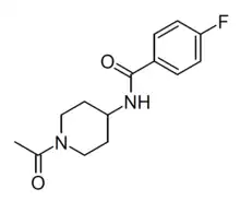 • CC(=O)N1CCC(CC1)NC(=O)C2=CC=C(C=C2)F