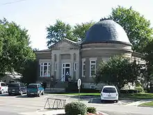 Fairbury was laid out on November 10, 1857 by Caleb L. Patton and Octave Chanute.[4] Like most Illinois towns of the 1850s, the original town of Fairbury was centered on a depot ground. It consisted of twenty-six blocks, each divided into fourteen to sixteen lots. There was no central public square, but one was later included in Marsh's addition. The plan used was virtually identical to that at Chatsworth, Illinois, including the street names, and the plan was very similar to that at Gridley and El Paso on the same railroad.[5]