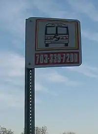 A typical Fairfax Connector bus stop sign