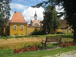 Fala Castle is a castle on the right bank of the Drava River in the southern part of the settlement. It was first mentioned in written documents dating to 1245, but most of the current building, including the castle chapel, dates to the 16th and 17th century with major 19th-century reconstruction.[7] The structure originally belonged to St. Paul's Abbey in the Lavant Valley. It was destroyed by Hungarian forces in 1259, and a new structure was built in 1290. The castle was additionally fortified in the 16th century due to the danger of Ottoman attacks. It was remodeled in the Baroque style in the 17th century, when it also housed a school for priests. The castle came under state ownership with the dissolution of the monastery in 1782, and was then purchased by the Liebmann von Rast family in 1822. A chapel dedicated to Saint Nicholas was part of the castle. The last owners before the Second World War were Count Alfonz Zabeo and his son-in-law Pavel Glančnik. After the war, the castle was nationalized.[4]