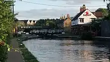The Grand Union Canal runs through the southern outskirts of the town and Fenny Lock is located in Simpson Road area to the east of Watling Street. It is notable both for the manually operated swing bridge which crosses the lock and for the very small rise in the lock (around 30 cm (12 in), the shallowest on the Grand Union Canal network). This was deemed necessary by the canal engineers because the next section northwards of the canal could not be made adequately watertight at reasonable cost without it.[10] The level persists from this lock for eleven miles, through what is now Milton Keynes, through to the next lock at Cosgrove. A little further south of the canal bridge, Watling Street crosses the river Ouzel (a tributary of the river Great Ouse: it was the marshy ford across this river that gave the town its name.