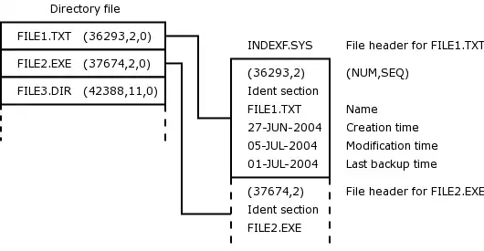 Note that the file system implementation itself does not refer to these files by name, but by their file IDs, which always have the same values. Thus, INDEXF.SYS is always the file with NUM = 1 and SEQ = 1.