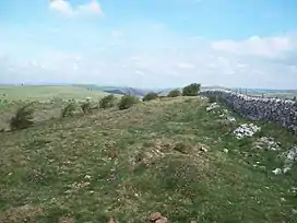 The fort shows evidence of hurried construction, indicating a defensive response to a real threat, rather than the more usual assumption that such forts were a display of status and prestige.[2] The hillfort, along with an adjacent bowl barrow, lime kiln and quarry, constitutes a Scheduled Ancient Monument.[3]