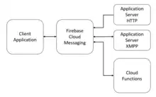 Firebase Cloud Messaging has three main capabilities. The first capability is that FCM allows the user to receive notification messages or data messages which can be deciphered by the application code. The second capability is message targeting. Messages are able to be sent to the client application through different methods; from the FCM platform to individual devices, specified device groups or devices which are subscribed to particular topic domains. The third key capability is the connection channel from client applications to the server. FCM allows messages of various types to be sent from selected devices or client apps via the FCM channel.[9]