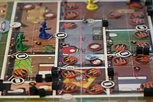 Flash Point: Fire Rescue is a thematic cooperative board game designed by Kevin Lanzing with the help of firefighters.[1] released in November 2011.[2] The objective is for players to work together to rescue people and animals from a burning building before it collapses. Since the initial release of the game several expansions have been published, which add additional scenarios for players experience. These include fires in a high rise building, a two-story house, and a submarine.