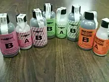 For photographic use, mixtures containing magnesium and nitrates are made much more fuel rich. The excess magnesium is volatilized by the reaction and burns in air providing additional light. In addition, the higher concentration of fuel results in a slower burn, providing more of a "poof" and less of a "bang" when ignited. A formula from 1917 specifies 5 parts of magnesium to 6 parts of barium nitrate for a stoichiometry of nine parts fuel to one part oxidizer.[4] Modern recreations of photographic flash powders may avoid the use of barium salts because of their toxic nature. A mixture of five parts 80 mesh magnesium to one part of potassium nitrate provides a good white flash without being too violent. Fuel rich flash powders are also used in theatrical flash pots.