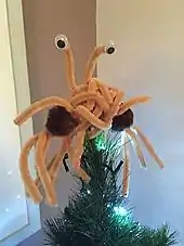 An alternative tree-topper for Pastafarians, handmade from pipe cleaners and pom poms