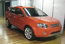 The Ford Territory is a mid-size crossover SUV built by Ford Australia that was introduced in April 2004 and produced until 7 October 2016.[1] It was the only SUV built in Australia and Ford's first large three-row crossover SUV. It was originally based on the EA169 platform introduced by the EA Falcon and its internal project codename was E265. It won various automotive awards and was the first SUV to win the Australian title of Wheels Car of the Year in 2004, due to its acceptable handling and child carrying capacity.