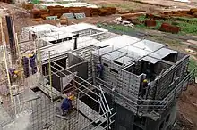 - Re-usable plastic formwork. These interlocking and modular systems are used to build widely variable, but relatively simple, concrete structures. The panels are lightweight and very robust. They are especially suited for similar structure projects and low-cost, mass housing schemes. To get an added layer of protection against destructive weather, galvanized roofs will help by eliminating the risk of corrosion and rust. These types of modular enclosures can have load-bearing roofs to maximize space by stacking on top of one another. They can either be mounted on an existing roof, or constructed without a floor and lifted onto existing enclosures using a crane.