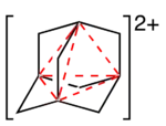 An example of a purely organic compound with four-center two-electron bonding is the adamantyl dication.[3] The bond joins the four bridgehead atoms in a tetrahedral geometry.