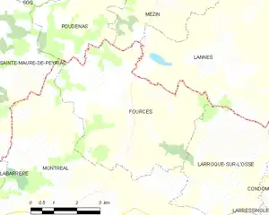 Fourcès lies near Castelnau-d'Auzan and Montréal.