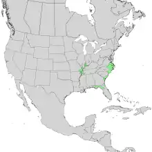 Pumpkin ash has a discontinuous range in eastern North America, where it occurs mainly in swamps and river bottoms of the Atlantic coastal plain, Mississippi valley and lower Great Lakes basin, but is conspicuously absent from regions in between, such as the Appalachian Mountains.[4][6][7] As a result of widespread damage by the emerald ash borer, pumpkin ash is near extirpation in North Carolina, South Carolina and Florida, and is critically endangered in Canada.[6]
