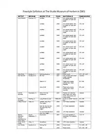 - ↑ Cotter, Holland (2001-05-11). "ART REVIEW; A Full Studio Museum Show Starts With 28 Young Artists and a Shoehorn". The New York Times. Retrieved May 11, 2001.