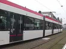 The Freiburg im Breisgau tramway network (also known as Stadtbahn or formerly as Hoobl (Alemannic for Hobel))[1] is a network of tramways that forms part of the public transport system in Freiburg im Breisgau, a city in the federal state of Baden-Württemberg, Germany. Established in 1901, the network has been operated since its foundation by the company now known as Freiburger Verkehrs (VAG Freiburg or VAG), and powered by electricity. The tramway network currently has five lines. The expansion of the tram network since 1980 has served as an example of the "renaissance of the trams" in Germany. As of 2023, 73 trams were available for regular use: 2 of these were high-floored, 36 partial and 35 low-floored.[2][3] Almost the entirety of the network is located within Freiburg's urban area; only a few metres of the balloon loop at Gundelfinger Straße are located outside the boundary of Gundelfingen to the north of Freiburg. In total, the trams serve 20 out of the 28 districts in Freiburg.